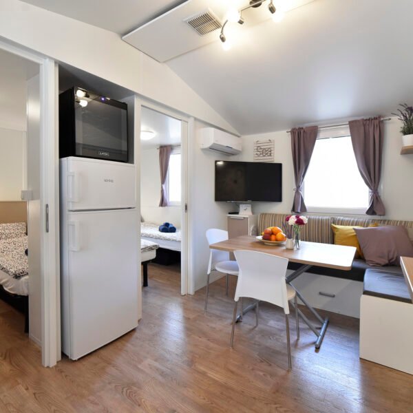 Posidonija I ist ein modern eingerichtetes Mobilheim in Biograd na Moru, ideal für Gäste, die einen komfortablen Urlaub in Strandnähe suchen. Es liegt im Camp Soline, im Schatten der Pinien und nur wenige Schritte vom Meer entfernt, und bietet die perfekte Kombination aus Privatsphäre, Funktionalität und mediterraner Sommeratmosphäre.